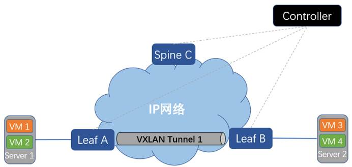 Controller可以是一个或者一组硬件设备,也可以是一套软件。Controller与网络中所有设备建立连接,整个VXLAN网络的数据转发都由Controller来管理。Controller与设备连接的接口称为南向接口,可以使用OpenFlow、Netconf等协议;对用户提供服务的接口称为北向接口,也可以提供API以便与其他管理平台对接或进行深度开发。