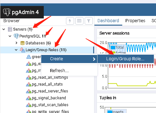 找到login/Group Role点击,起个名字,给个密码