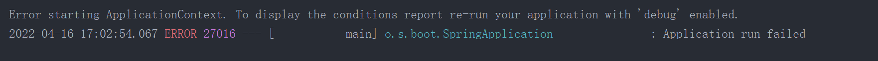 2022-04-16 17:02:54.067 ERROR 27016 --- [ main] o.s.boot.SpringApplication : Application run failed