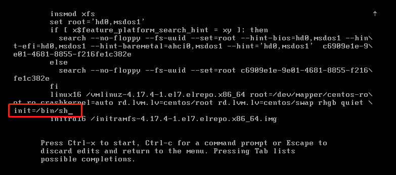 添加完成后使用ctrl+x启动,成功后会出现sh-4.2#,如下: