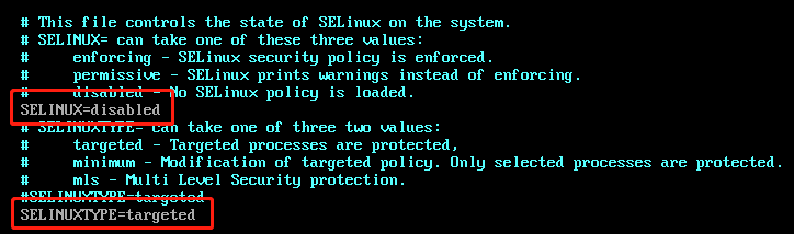 编辑/etc/selinux/config文件(也可以使用vi命令):vim /etc/selinux/config