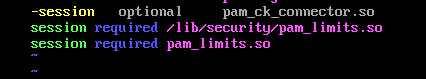 因为安装的虚拟机系统为64位,因此此位置也可能不正确,因此直接注释掉”session required /lib/security/pam_limits.so“这一行。保存退出。