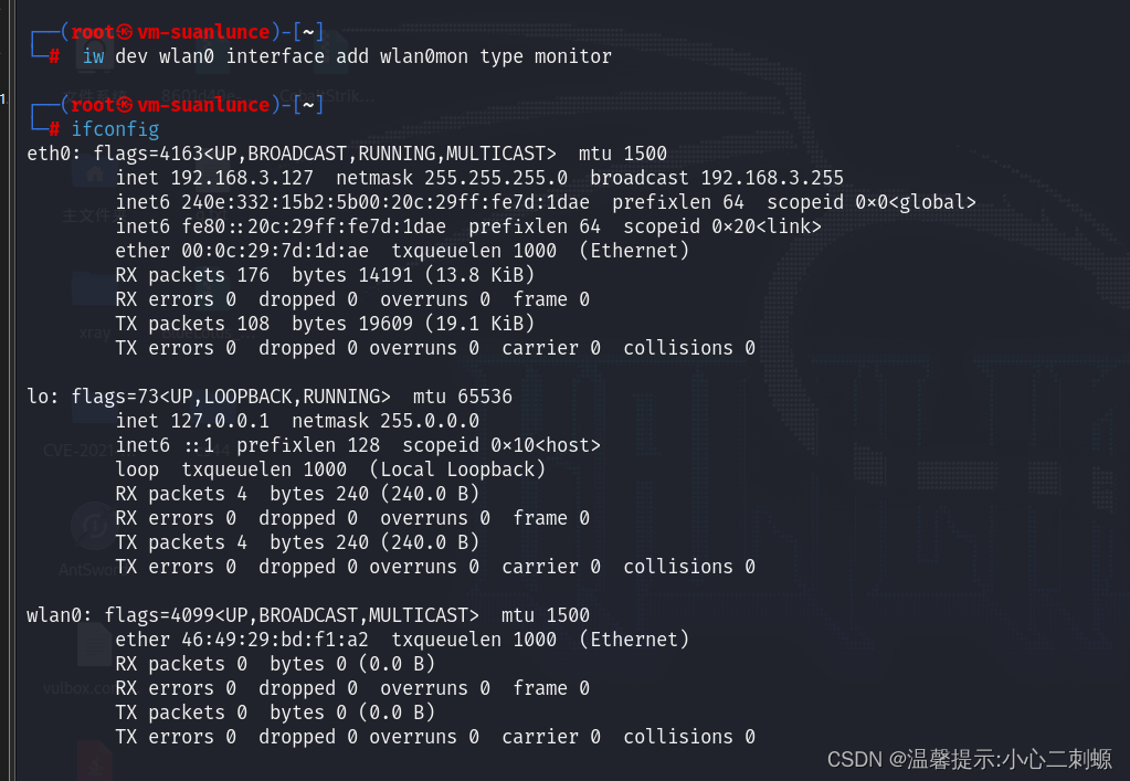 可以看到已经成功删除wlan0mon网卡。