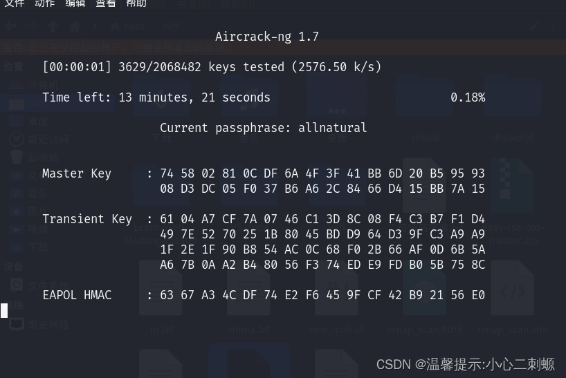我随便找了一个字典,里面有这个WiFi的密码,所以我这个包肯定是可以跑出密码的。