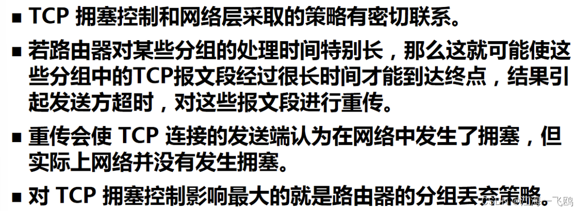 路由器的尾部丢弃往往会导致一连串分组的丢失,这就使发送方出现超时重传,使TCP进入拥塞控制的慢开始状态,结果使TCP连接的发送方突然把数据的发送速率降低到很小的数值。