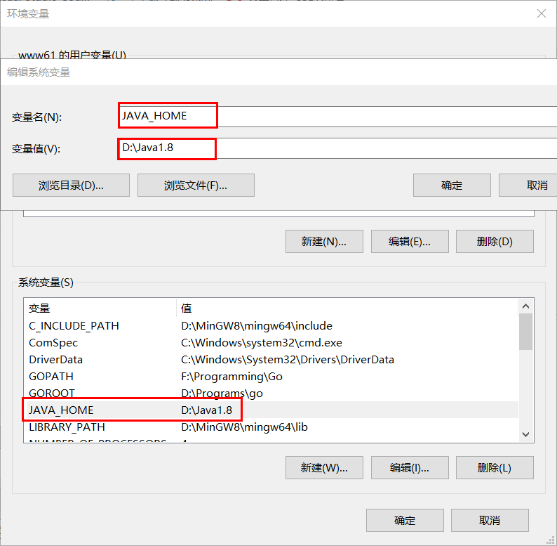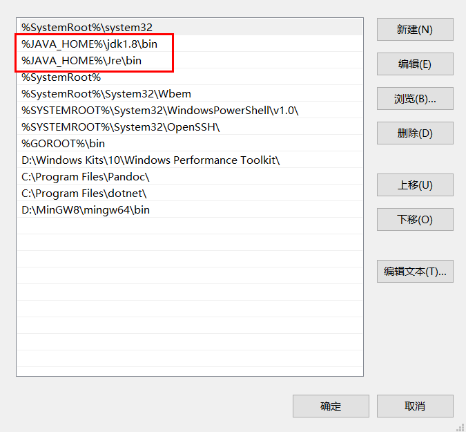5.在系统变量中找到Path,加入:%JAVA_HOME%java1.8bin;%JAVA_HOME%Jrebin