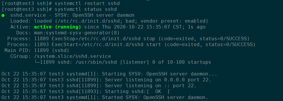 问题解决:先停掉sshd服务,将systemctl原服务器删除,使用安装包里自带的sshd.init,复制到/etc/init.d/sshd,重启即可