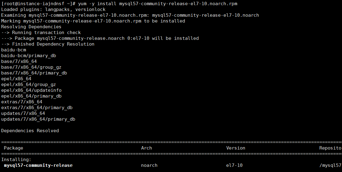 [root@instance-iajndnsf ~]# yum -y install mysql57-community-release-el7-10.noarch.rpm