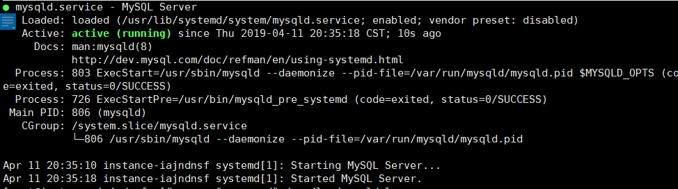 [root@instance-iajndnsf ~]# systemctl start mysqld.service