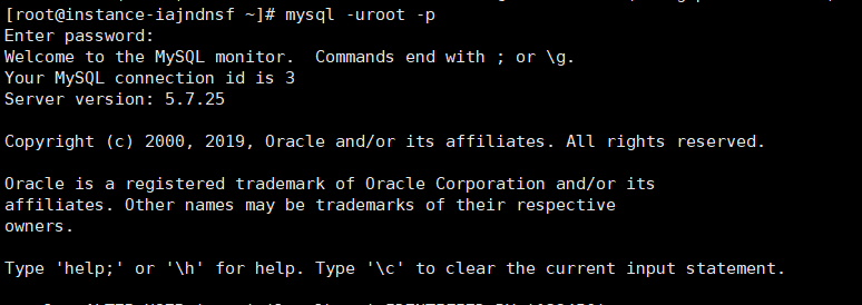[root@instance-iajndnsf ~]# mysql -uroot -p