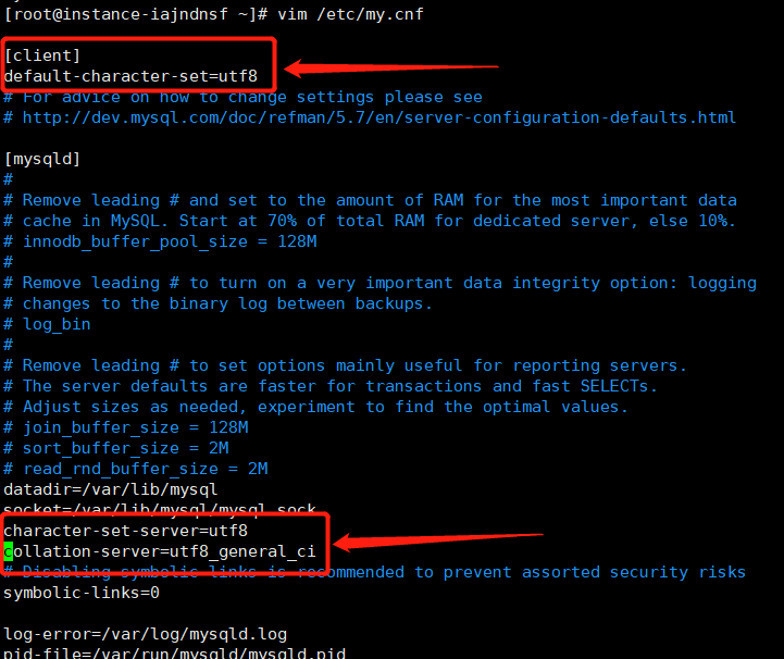 [root@instance-iajndnsf ~]# vim /etc/my.cnf