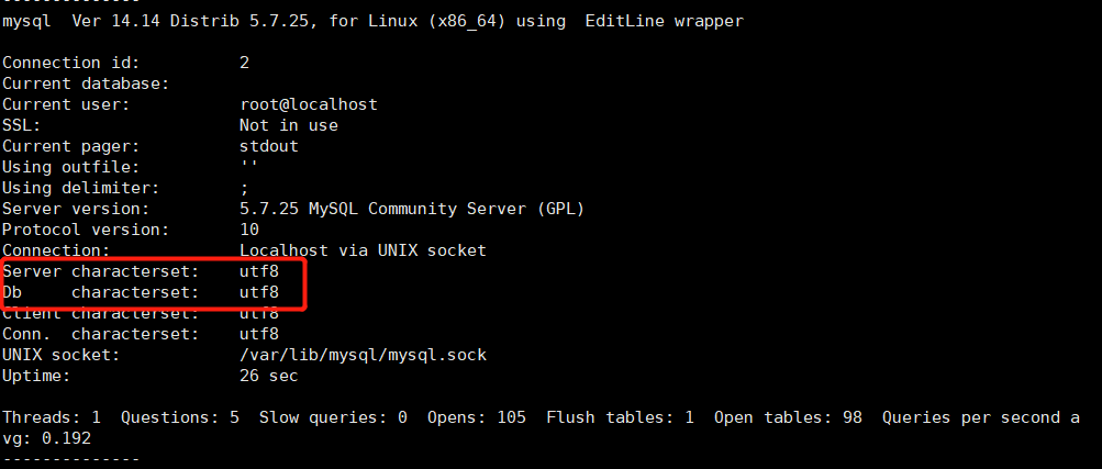 mysql> status