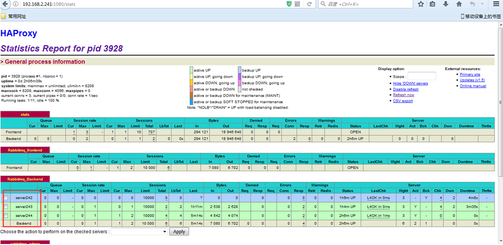 访问:http://192.168.2.241:1080/stats 可以看到已经把3台MQ加入负载了