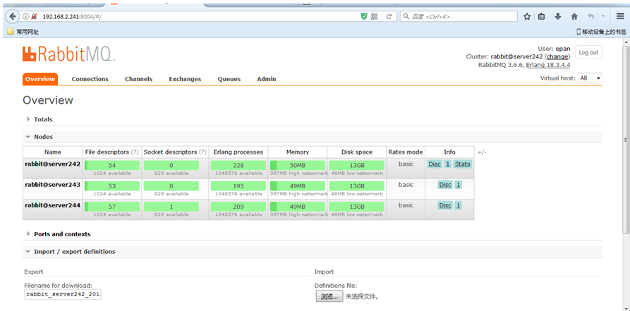 因为我们在haproxy配置文件里已经把RabbitMQ监控也加入进负载了,所以访问的时候也是访问haproxy的代理地址 http://192.168.2.241:8004