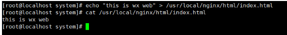 echo "this is wx web" > /usr/local/nginx/html/index.html