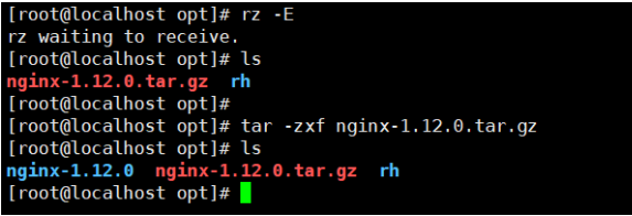 4. #切换至opt目录,将下载好的压缩包传进来解压