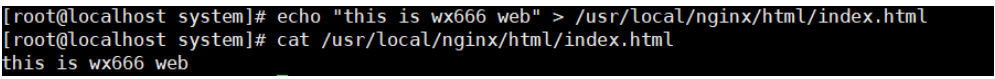 echo "this is wx666 web" > /usr/local/nginx/html/index.html