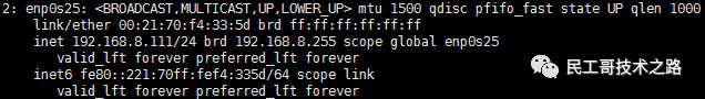 ip addr sh enp0s25 (将enp0s25替换成主机的网卡名)