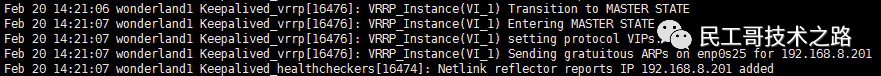 在/var/log/message中,也能够看到keepalived输出的切换日志: