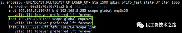 也可以再次执行ip addr sh enp0s25命令,会看到虚IP被备机抢去了。