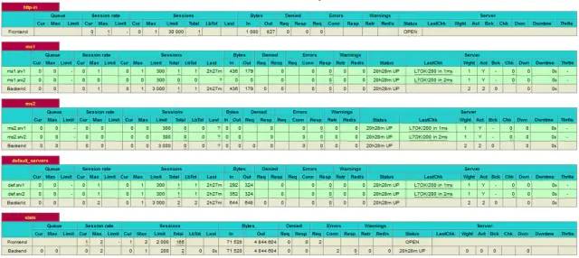 监控与统计:HAProxy提供了基于Web的统计信息页面,展现健康状态和流量数据。基于此功能,使用者可以开发监控程序来监控HAProxy的状态