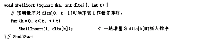 voidShellSort(Sqlist &L,int dlta[],int t)