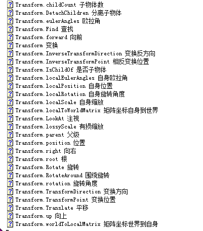 4.7 最后一个大总管,transform物体的位置、旋转和缩放,场景中的每一个物体都有一个Transform。用于储存并操控物体的位置、旋转和缩放。每一个Transform可以有一个父级,允许你分层次应用位置、旋转和缩放。可以在Hierarchy面板查看层次关系。他们也支持计数器(enumerator),因此你可以使用循环遍历子物体。