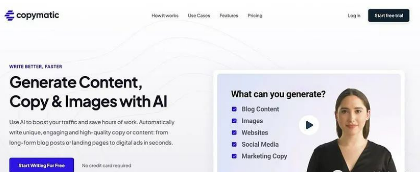 借助 Copymatic,您可以访问复杂的 AI 内容生成器,以及利用先进 AI 技术的强大重写向导。