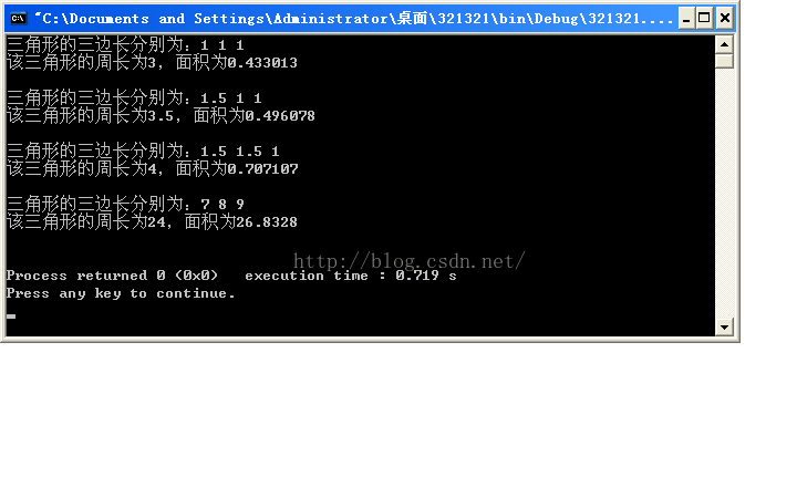 cout<<"该三角形的周长为"<<perimeter()<<",面积为"<<area()<<endl<<endl;