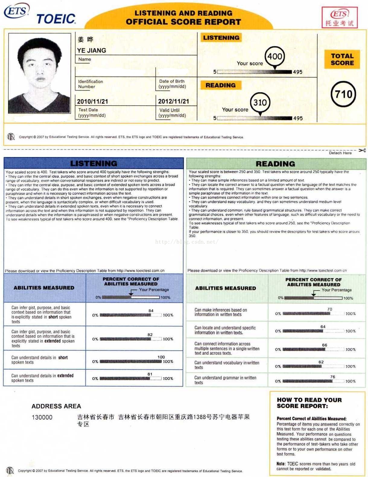后来成绩下来了,打开成绩单之前,我内心是极其忐忑的。打开发现我考了710分,想想觉得还不错,但是没达到八百分,多多少少还是觉得有点可惜。尽管我现在已经忘了当时自己为什么那么自负,但是710分也是挺不错的一个成绩了。