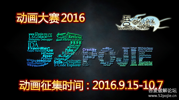 记得上一届(第四届)的吾爱破解视频教程比赛是在2015年的年初举办的,当时错过之后,就想参加今年的比赛。因为尽管那次比赛我没有参加,但是却极大地改变了我之后的人生走向,因此也是发生了不少的故事。事后回想,这一切就如同蝴蝶效应,一点小小的振翅,可能引发一场又一场的飓风。而这次我是铁了心要参赛的,但是年初过去了,年中也过去了,吾爱论坛始终没有举办赛事的消息,一度觉得今年就不会举办了,觉得没办法还愿了。直到时间来到了九月初,无意间登录论坛,终于发现了这次比赛的举办消息: