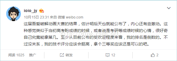 那个时候,在等待最终结果的那几天,我还是有些紧张的,当时甚至还发了一条微博: