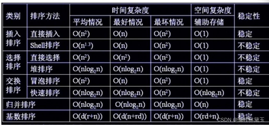 快速排序是目前基于比较的内部排序中被认为是最好的方法,当待排序的关键字是随机分布时,快速排序的平均时间最短;堆排序所需的辅助空间少于快速排序,并且不会出现快速排序可能出现的最坏情况。这两种排序都是不稳定的。若要求排序稳定,则可选用归并排序。