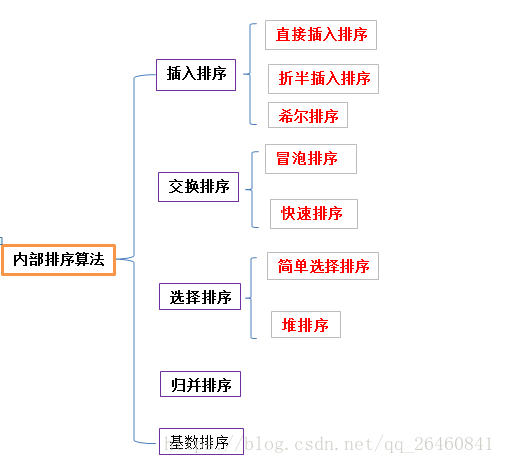 下面按照课本的分类,做了大致的内排序的归类的图片: