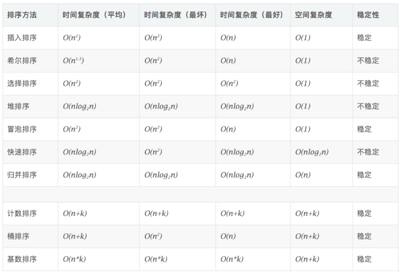 0.排序算法种类和时间复杂度比较、