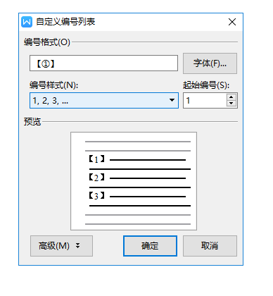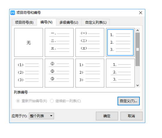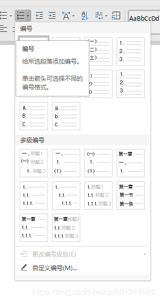 点击”自定义编号”,先选择一个基本格式,然后点击”自定义”。