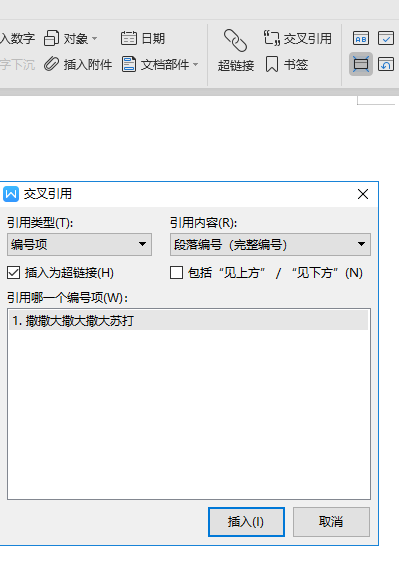 将光标放在要插入引用的段落之后,选择"插入" --"交叉引用"