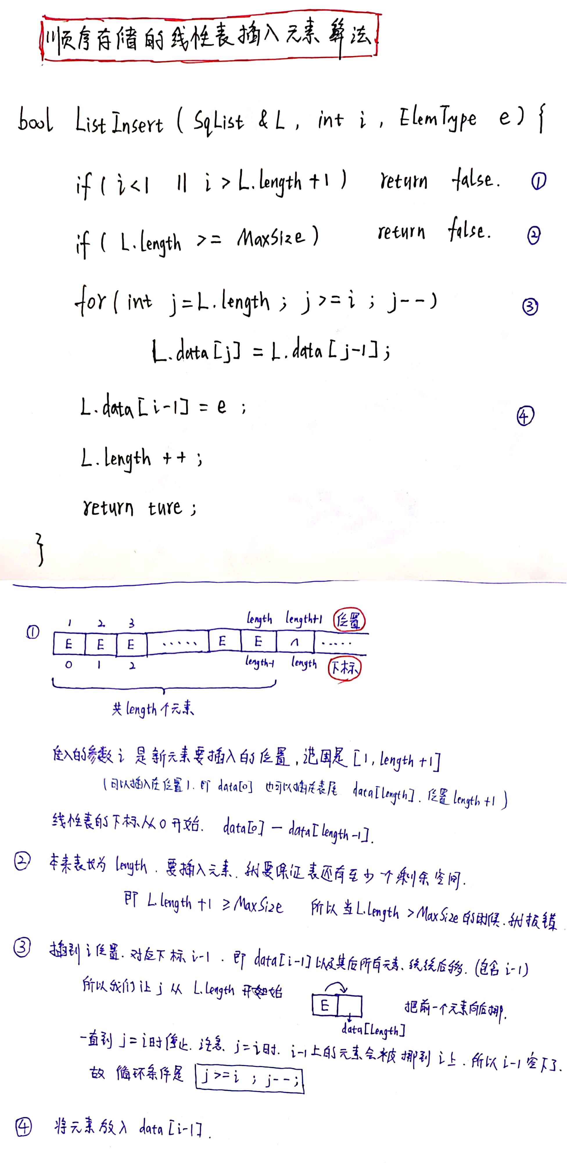线性表插入元素算法(顺序存储)