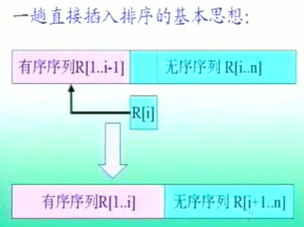 插入类排序:将无序子序列中的一个或几个记录“插入”到有序子序列中,从而增加记录的有序子序列的长度。