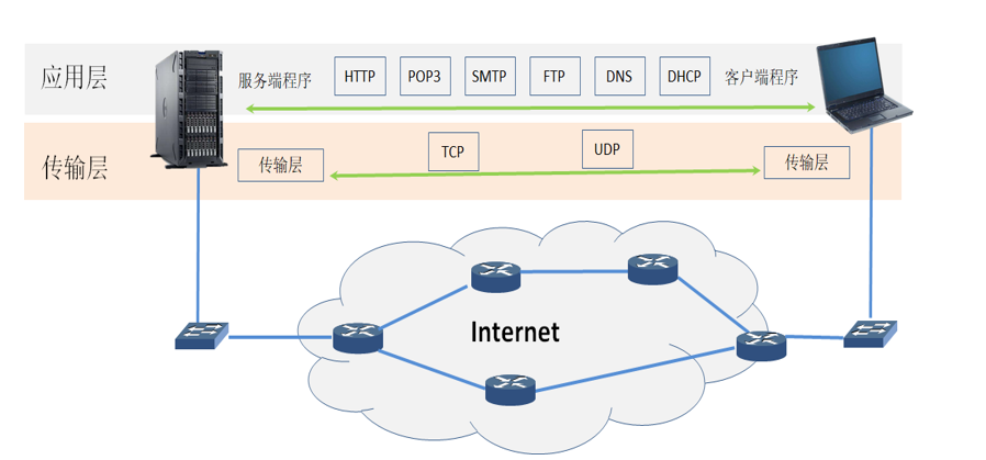 (1)客户端程序和服务端程序通信,应用程序发送的数据包不需要分段。比如域名解析,DNS协议就是用传输层的UDP,客户端向DNS服务器发送一个报文解析某个网站的域名,DNS服务器将解析的结果使用一个报文返回给客户端。