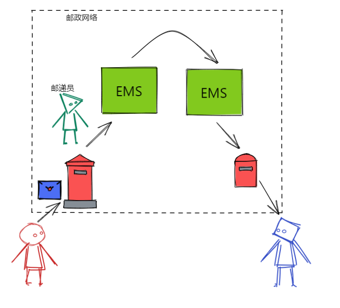 同样的一次通信,通过中国邮政来寄信,用户只需要通过邮筒和信箱与邮政网络进行交互,邮递员只需要处理邮筒中的数据到邮政物流,邮政物流之间只需要处理信件在主干网上的流通。各层之间只需要关注自己处理的数据即可。