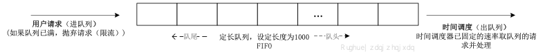 2、 用户请求优先入队列(如果队列已满,直接抛弃请求)(入队列速率不限定)