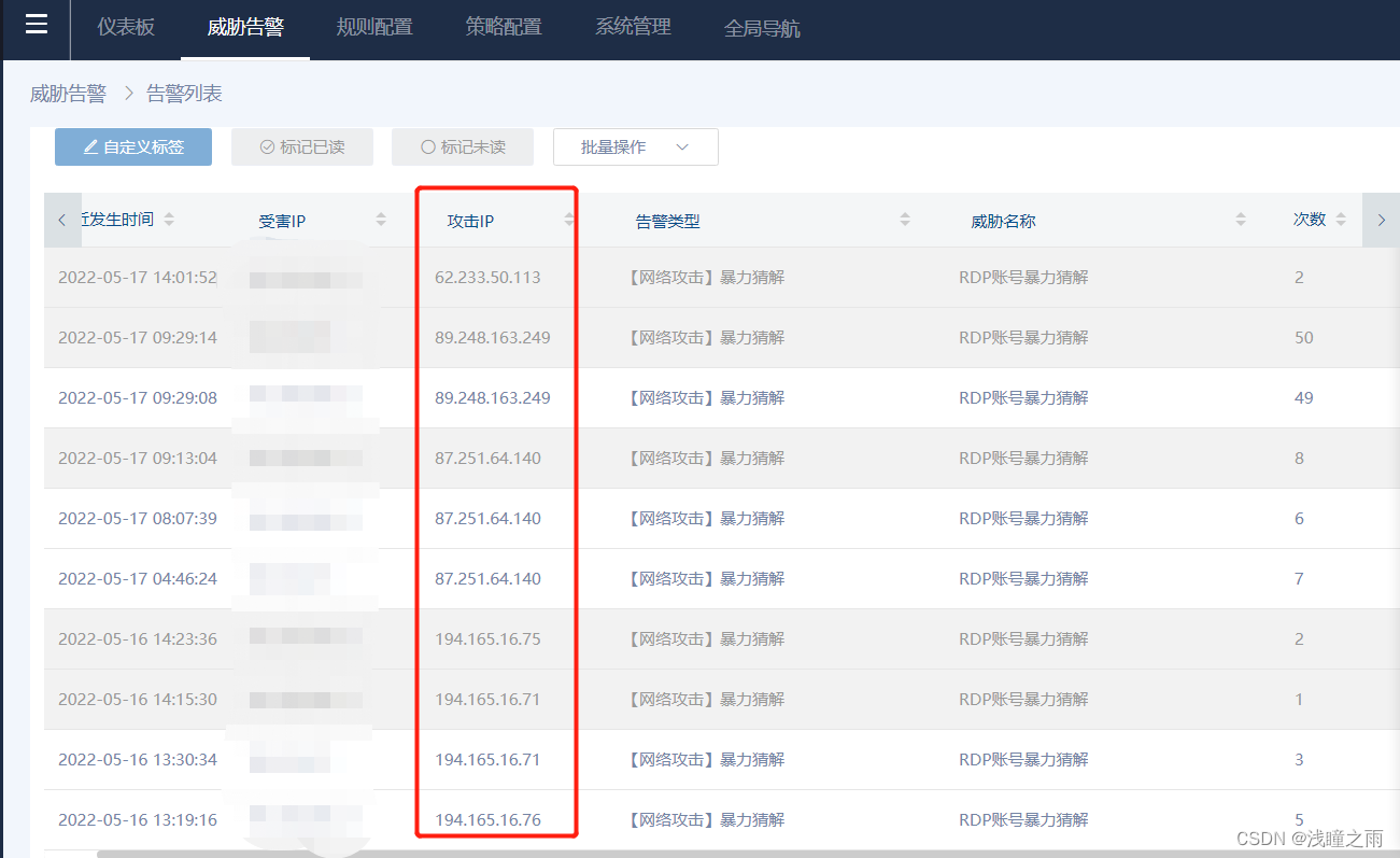新建策略的时候,将异常ip添加到源地址那一栏,选中动作“禁止”,在勾选一下命中日志(可以看到后续入侵ip的入侵次数)