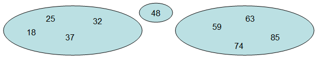 我们选取48作为枢纽元,那么经过一次递归后该集合将被48分割,分割后的集合如下图所示: