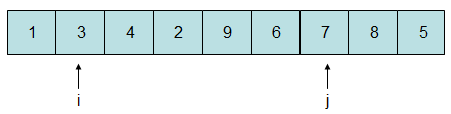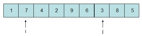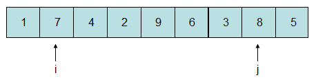 由于7比5大,故i停在此处,而8比5大,将j自减一位: