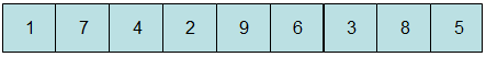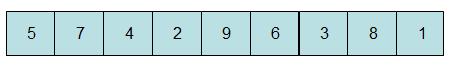 初始位置如上图所示,接着要选取中间元,这里中间元下标为(0 + 9) / 2 = 4,按照步骤①将5,9,1进行比较,并交换位置: