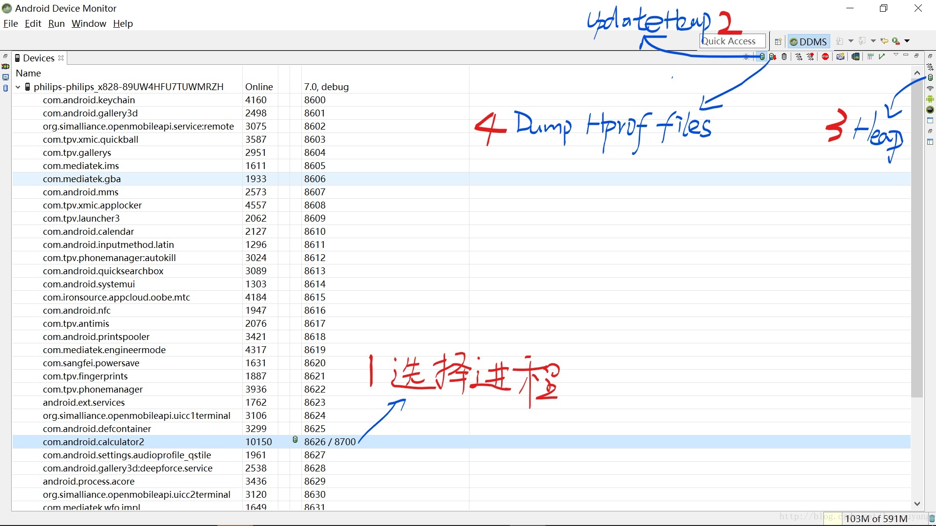 打开DDMS界面,操作步骤: