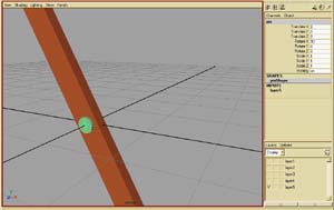 1 .首先创建一个多边形立方体,取名 b1 ,作为第一条杆,长、宽、高分别为 0.4 、 10.1 、 0.2 。把它从 z 轴旋转一点角度。
