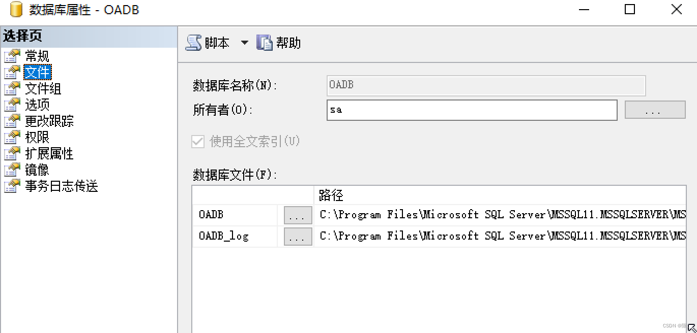 如何找到数据库文件:右击数据库->属性->文件->路径,如下图中,右击数据库,找到属性,在弹出的界面中左侧找到文件,在右侧找到路径,该路径就是数据库文件的存储路径。