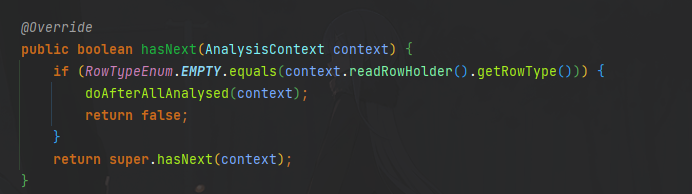 以上就是畅快信封最近收集整理的关于EasyExcel 读取excel表 解决Empty row EasyExcel末尾出现非常多空白行跳过 EasyExcel跳过末尾空白行的全部内容,更多相关EasyExcel内容请搜索靠谱客的其他文章。